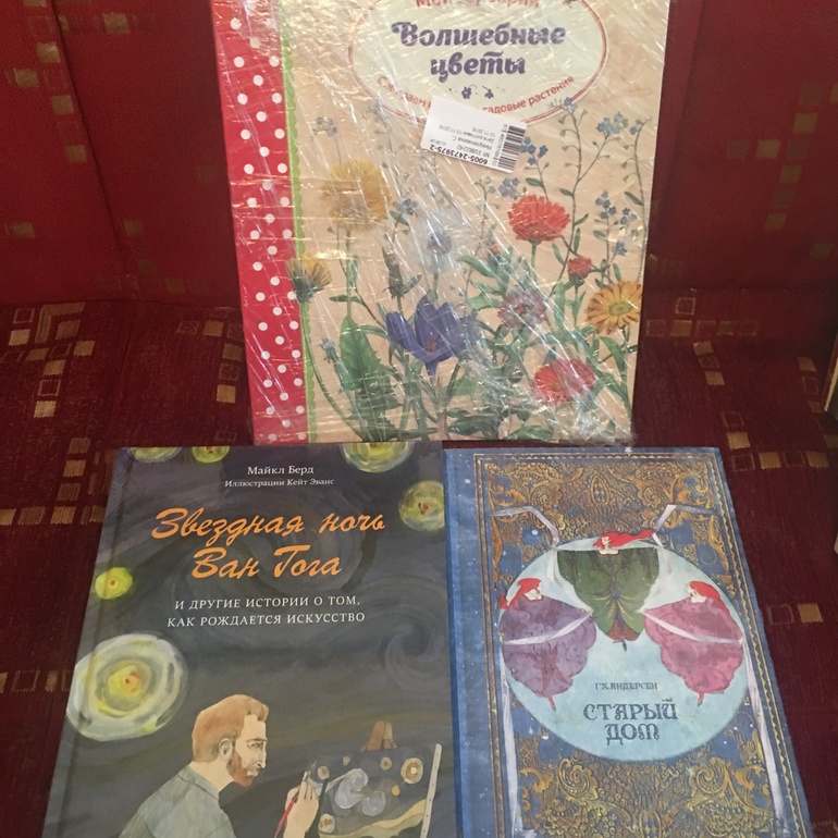 Прочитали только Асино лето. Спасибо Катюше за обзор книг со скидкой из Озона. Последние 3 книги только, что принёс курьер из Лабиринта. Гербарий припрячу для лета, Звездную ночь Ван Гога купила старшей 13 летней дочери, она у меня рисует , а сказки мне любимой.