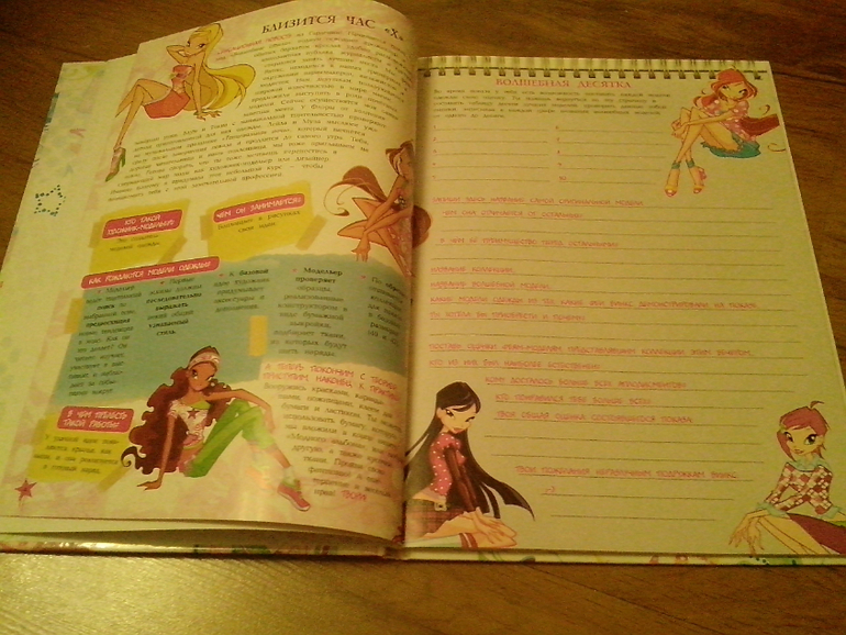Просто покажу фото разворотов. Заказывала для 10-летней любительницы Винкс и подобных персонажей)
