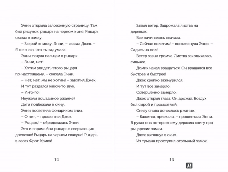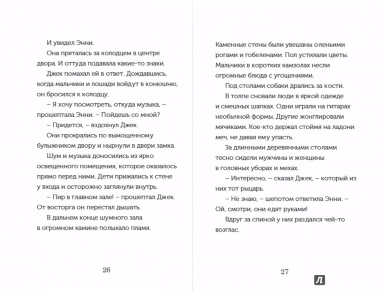 Приключения Джека и его младшей сестры Энни продолжаются. Любопытство снова привело их в дом на дереве! И в этот раз волшебная книга перенесла их в средневековый замок, где они побывали в оружейной комнате, кладовой, увидели настоящий пир и даже нашли потайную дверь!