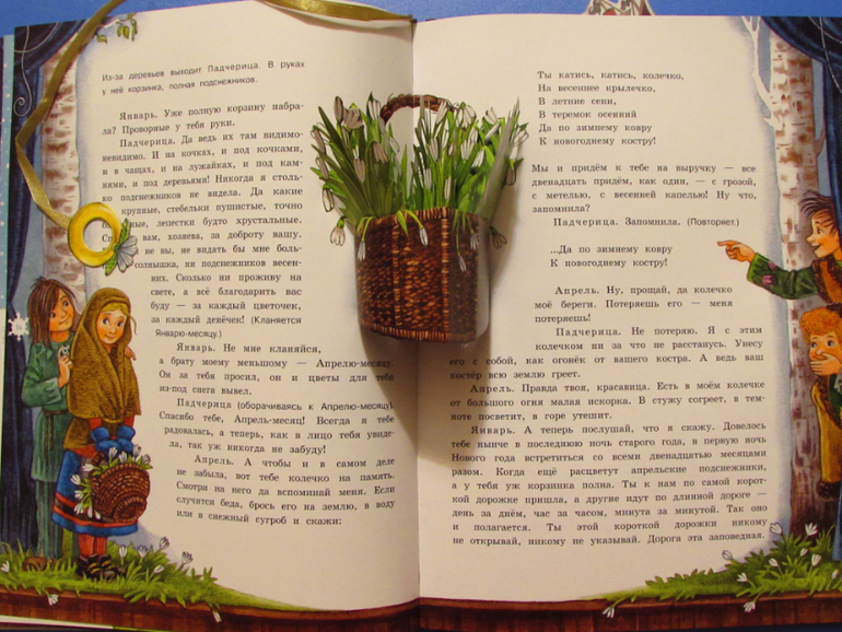 И мальчик-Апрель и девочка-падчерица, подснежники, птички-синички и даже колечко!