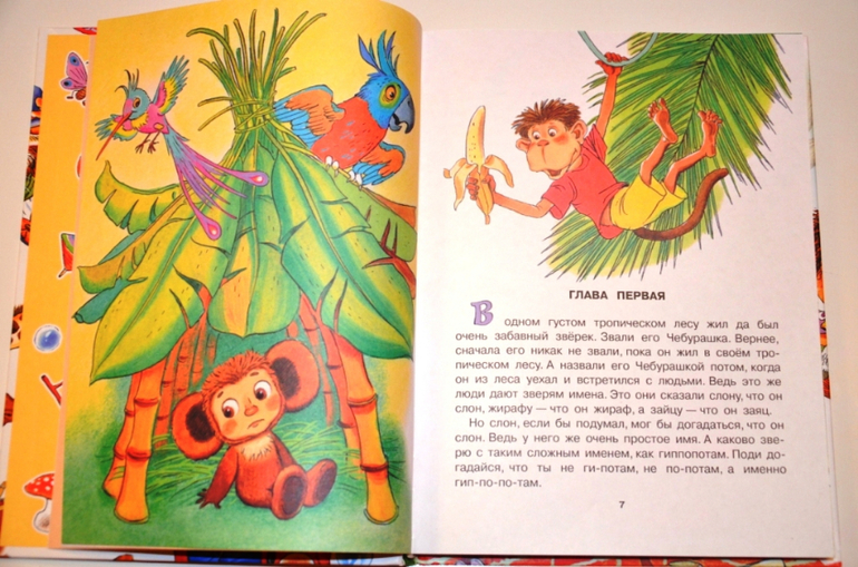 Не так давно стали читать с моей трёхлеткой прозу, много букв теперь пролетают незаметно и с интересом. После того как у нас поселился музыкальный чебурашка, дочь очень захотела узнать все истории и приключения верных друзей. Книжный выбор пал на данное издание: