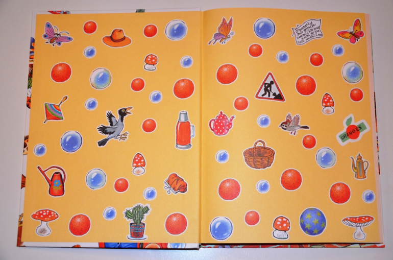 Рисунков в книге очень много (словно книга-картинка), каждый разворот либо расписан на две страницы с небольшим текстовым фрагментом, либо содержит одну полно страничную картинку, а на другой текст.