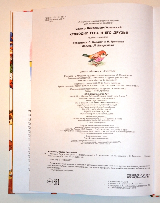 А нам предлагаю заглянуть в гости к Гене и Чебурашке на страницы книги в исполнении Издательства АСТ "МАЛЫШ"..