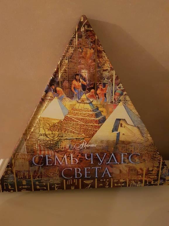 Оригинальное издание, неплохо для новогоднего подарка. История и описание семи великих творений человечества, из которых до наших дней сохранились лишь пирамиды.
