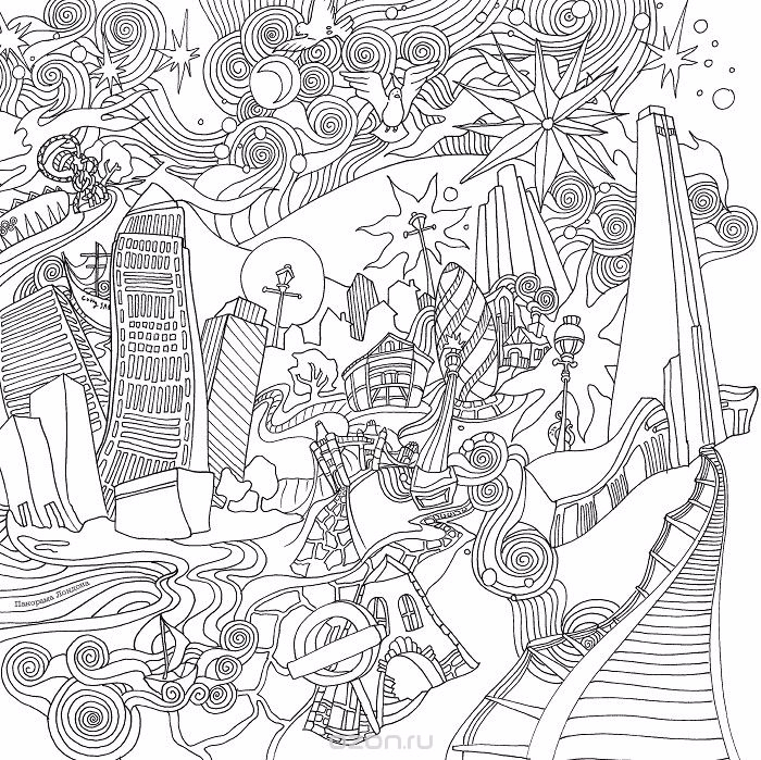 Эта раскраска - настоящее волшебное путешествие по городам мира, в которое мы отправляемся с популярной британской художницей Лиззи Мэри Каллен, большой поклонницей психогеографии и лауреатом многочисленных премий в области изобразительного искусства. Большие города полны магии - стоит только присмотреться! От Лондона до Луксора, от Москвы до Токио будет пролегать наш маршрут. Каждая страница таит в себе радость узнавания известных архитектурных объектов и популярных туристических "жемчужин". Раскрашивать их - настоящее эстетическое удовольствие! Но чтобы было еще интереснее, художница спрятала в причудливых лабиринтах улиц и домов множество экзотических животных. Их следует находить и пересчитывать, испытывая настоящий азарт охотника. Все это здорово помогает разгружать сознание и способствует приведению мыслей в порядок. Так что скорее открывайте эту необыкновенную книгу и приступайте к раскрашиванию - польза и удовольствие гарантированы!