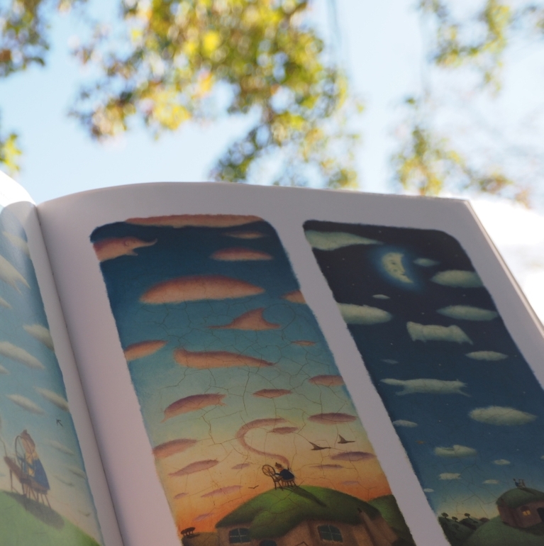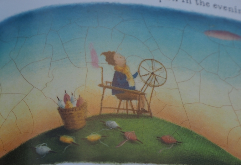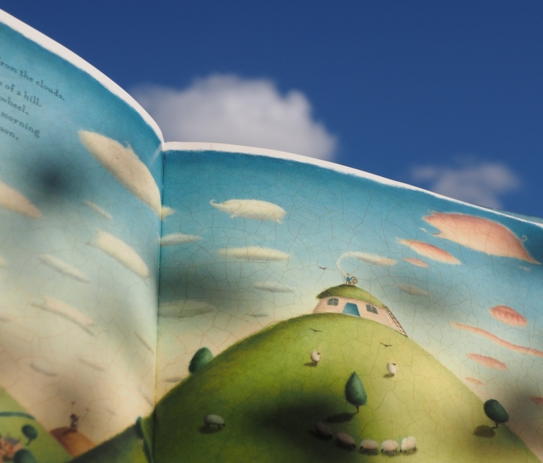 Он забирался на крышу своего домика, который стоял на самом верху холма и собирал облака в прядильный станок...