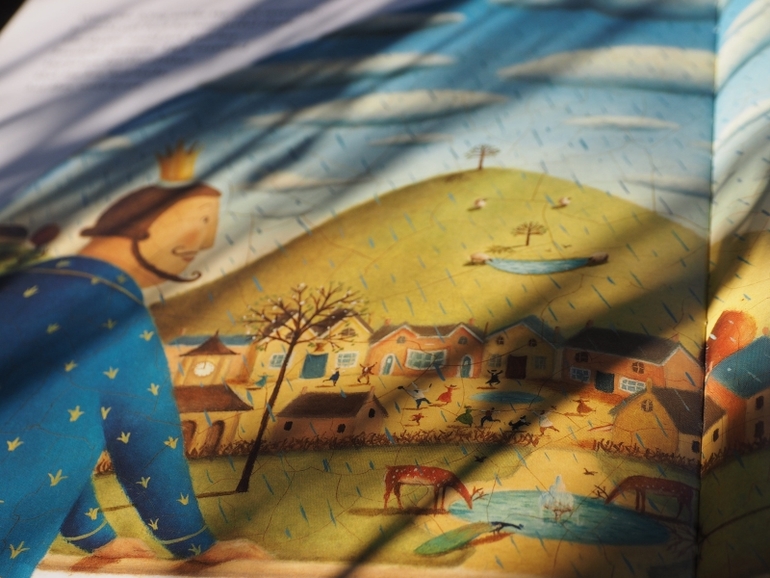 Однажды он отправился на городской рынок в своем невесомом облачном шарфе. В этот день на рынок приехал король, и увидев мальчика, естественно, захотел себе такой же шарф. Только намного-намного длиннее.