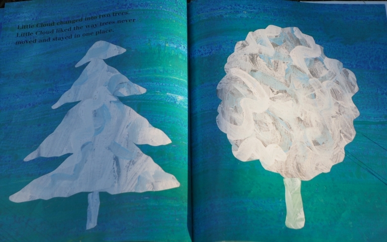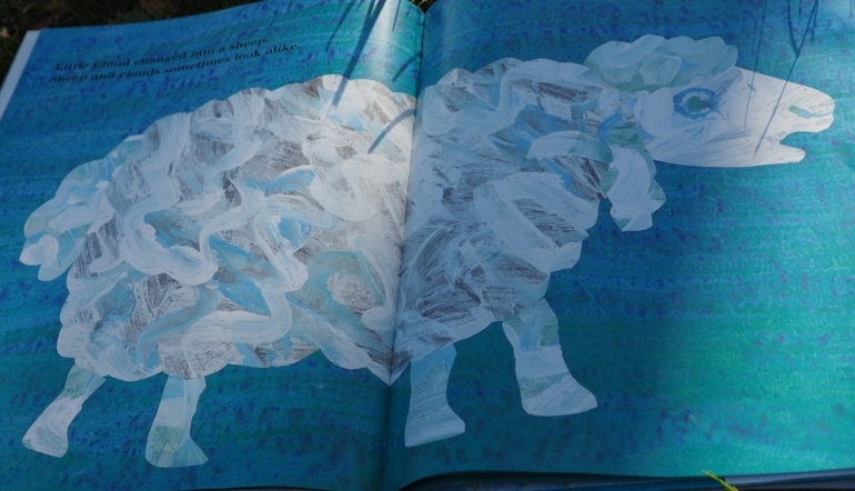 Эту небесную историю мы активно читали примерно в 2, 5 Ваниных года. (После того, как побывали на спектакле по книгам Эрика Карла) Но и сейчас иногда перелистываем с удовольствием. Ребенок радуется облачным метаморфозам, мама - неизменной гармонии оттенков, присущей всем книгам автора.