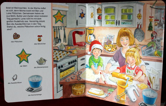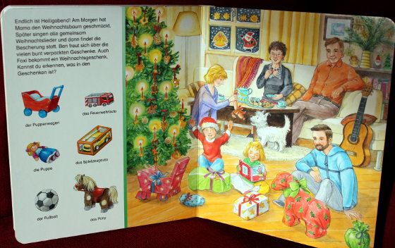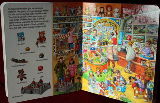 Там не очень много страничек, да он и не обычного большого виммельбуховского размера, а вполне себе среднего. Страничек не много, но они как обычно у виммелей на картоне. Парочка любимых дочкой: