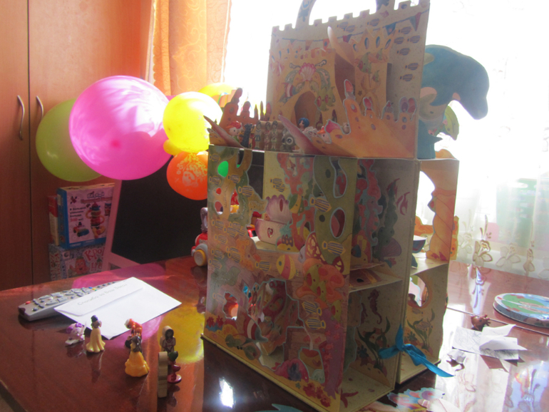 Сколько в этом дворце помещается киндеровских игрушек.. А ещё в нём спрятаны шесть волшебных талисманов, которые ребёнок должен найти, а также открывающиеся шкаф, сундук с сокровищами, раковина с жемчужиной и другие разные клапаны и окошки