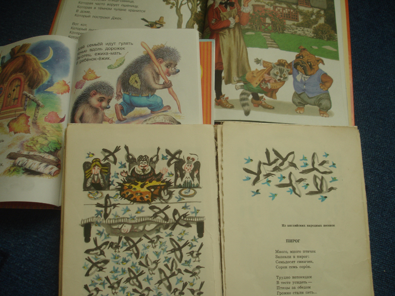 Литвинова у нас ещё в сборнике песенок, сыну очень нравились иллюстрации (мне так казалось), и я решила дублем ещё одну Токмакову купить.В принципе, оба сборника активно читались и читаются, ни один не валялся без дела, сейчас чуть меньше, а ещё полгода-год назад очень нравились. А ещё я такой формат люблю, больше, чем А4.