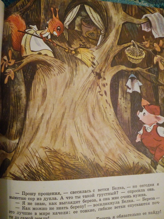 Еще мне очень в детстве хотелось побывать в гостях у Белки (Баллод, Румянцева "Про маленького поросенка Плюха", илл Медведева).