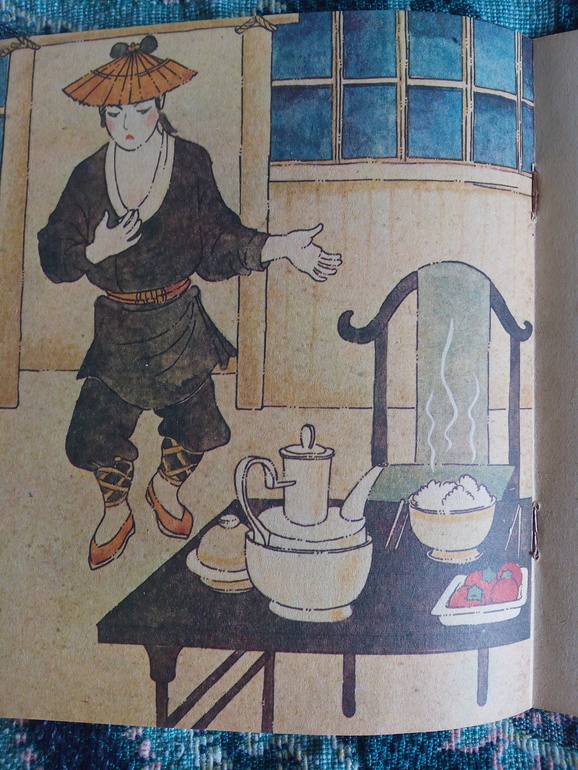 Рис с овощами казался необыкновенно аппетитным)) И сам интерьер таким непривычным, манящим своей сдержанностью. Сейчас разглядываю иллюстрацию и думаю, что художница изобразила скорее японский интерьер, а не китайский. А вы как думаете?