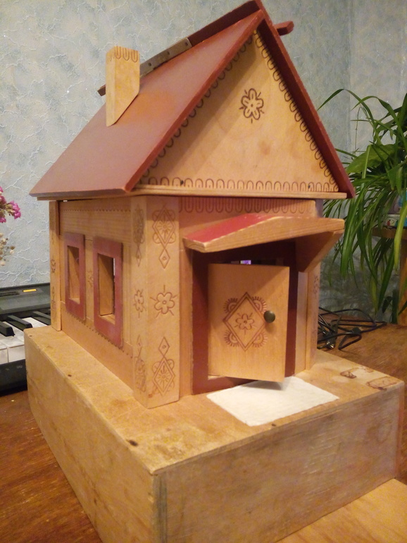 И покажу домик моего детства. Думала, стоит ли его, потрепанного моими племянниками, выставлять на обозрение. А потом решила, что он того заслуживает. Папа купил мне этот сборный домик, сделал в нем даже лампочку, стол, кровать сколотил. Я нашила шторок, налепила из пластилина вазонов с цветами. Сестра привезла набор маленьких домашних животных. Представляете, какой размах)) К сожалению, племянники растеряли животных, ну и внутри убранство не уберегли. Но тоже с удовольствием играли. А потом мой сыночек с большим интересом собирал вместе со мной дом, игрался. Так что, вот он, герой нескольких поколений.