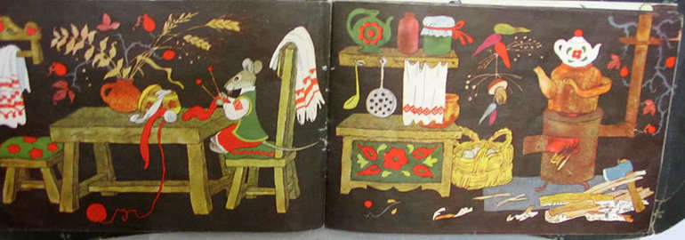 Маршак "Теремок", илл Васнецова. Так хотелось пожить у них в гостях))