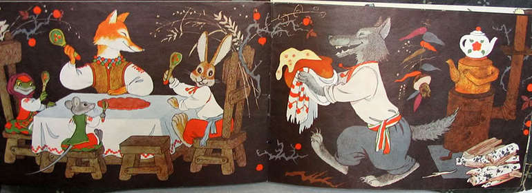 И сюда я хотела заглянуть, на блинчики с вареньем)) ("Лиса, волк и медведь", книжка по мультфильмам, илл Бариновой).