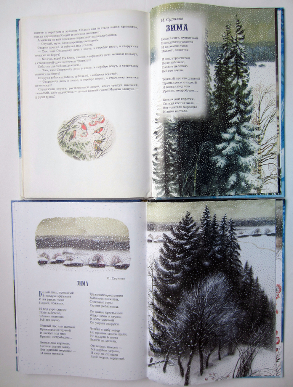 - изменилась цветовая гамма иллюстраций Николая Устинова: раньше было много жёлтого, теперь цвета более холодные, зимние: