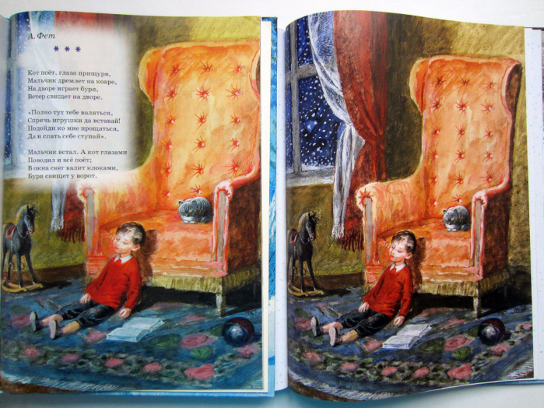 Если раньше в сборнике было 200 страниц, теперь 192. Удивляет, что столько убрано, а количество страниц почти то же самое? Всё очень просто: куски и отрывки превратились чаще всего в полные произведения. У Николая Некрасова по-прежнему отрывок из поэмы, но вряд ли она нужна в данном сборнике полностью. А вот "Зимнее утро" и "Морозко" теперь без сокращений!