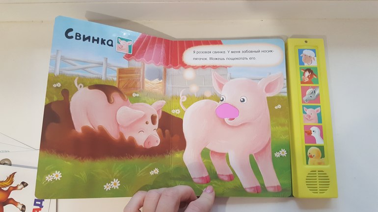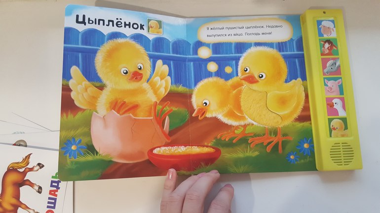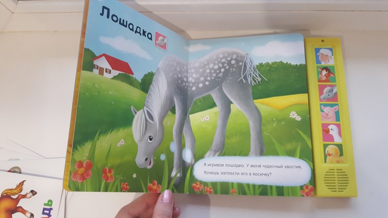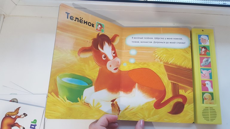 У нас такая про львенка. Любимая с 5 мес и до сих пор (10 мес сейчас) . Картон очень крепкий, захотелось еще пару таких книг прикупить)) Песенки только громковаты. Вам как звук? Думала скотчем динамик заклеить-но оторвем и слопаем скотч😊