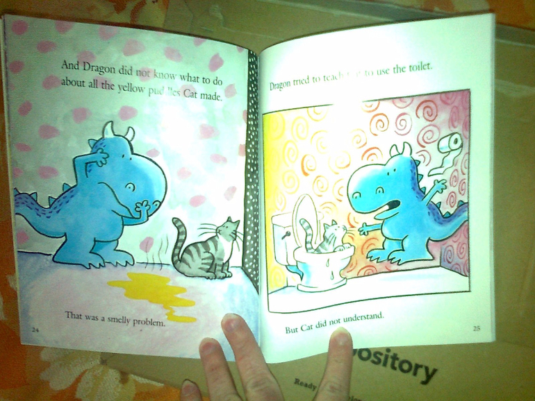 книги на иностранном языке21 октября моя душа не выдержала просьб дочки найти книжку с дракончиком из одного из ее на данную неделю любимого мультика и отыскала ее на bookdepository... Если уже делать заказ, то надо же туда хоть одну.. или две или - тут моя совесть взбунтовалась и я ограничилась заказом 3 книг. Одна из них про дракончика, одна про уже известного нам мистера Путтера и его кошку Табби и одна про библиотечного кота... Ну как же можно пройти мимо кота, да еще на фоне множества книг?