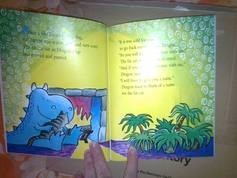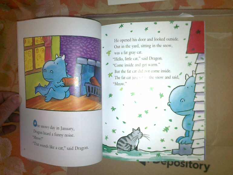 Последней до нас дошла книга из-за которой и затеивался наш заказ - книга про дракончика. Ее я еще не успела прочитать, но текст простой - иллюстрации милые, так что надеюсь на успех у моей читательницы ;)