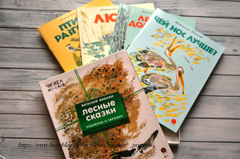 С Бианки мы только начинаем знакомиться, единственное что пока читали "Первую охоту" в формате "Страничек-невеличек" и "Птичьи разговоры". Сюжеты книг в этом комплекте, уже немного серьёзней и интересней.