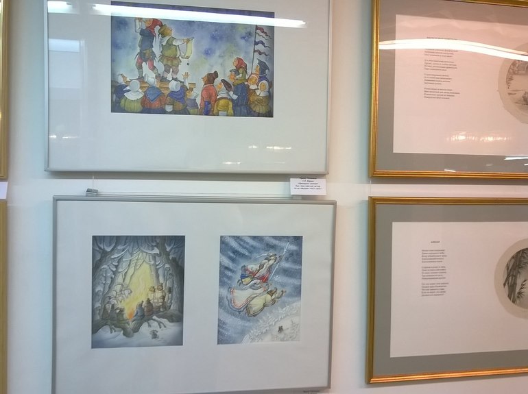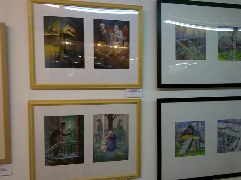 Если что, выставка проходит между вторым и первым этажом. Если подняться на первой эскалаторе, и сразу повернуть направо, пройти немного прямо, то справа вы как раз увидите выставку иллюстраторов. :)