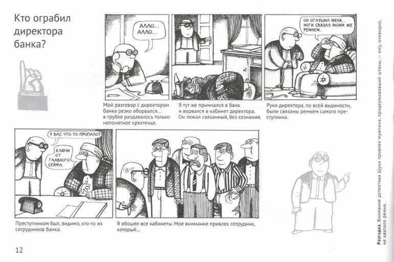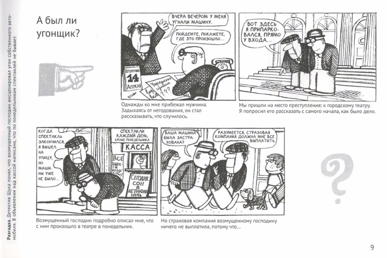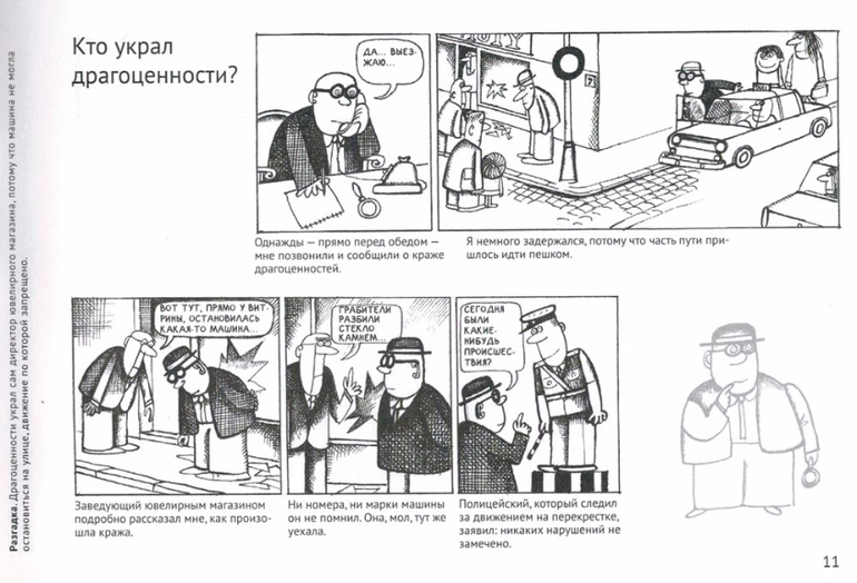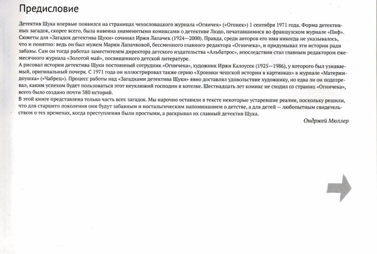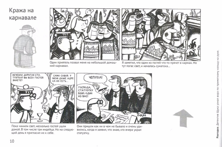 младшим школьникам"Загадки детектива Щуки" - короткие рисованные детективные истории. Читателю предлагается узнать, как именно детектив Щука изобличил преступника. Книга развивает наблюдательность и умение прослеживать логические связи и делать выводы. Хорошее семейное времяпровождение - разгадывать преступления интересно и детям, и взрослым. В книге нет жестокости, убийств и т.п. Но при этом описанные криминальные ситуации довольно разнообразны и не надоедают. Всего их около 200.