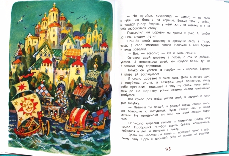 Дочка стала читать книгу сама. И хоть сказки достаточно длинные для начала чтения, но шрифт вполне крупный. Уже неделю она читает ее, осталась пара страничек. Видно, что ребенку очень понравилось и, думаю, особенно интересно читать благодаря иллюстрациям. Я не большой знаток художников, но здесь в сообществе часто сталкивалась с именем Леонида Владимирского и уже успела заметить, что многие покупают книги только из-за него. Теперь понимаю почему. Это рисунки моего детства и они и есть сама сказка.