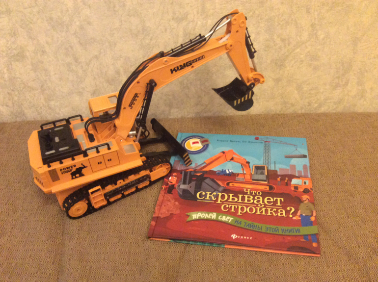 Так как Никита фанат строительной техники и обожает играть в фонарик, я не долго думала какую книгу ему подарить) Конечно же "Что скрывает стройка?" От ИД "ФЕНИКС"