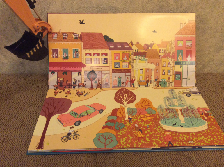 Я очень долго засматривалась на эту серию и купила, когда у МиФа были очень хорошие скидки. Там три книги в серии, если не ошибаюсь, но мой выбор пал на "Город", так как там тоже есть строительная техника))) Плюс машины разные)