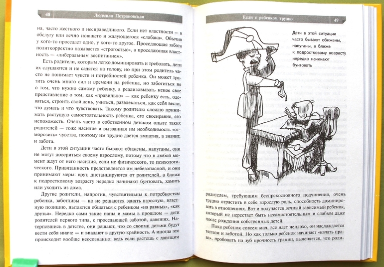 И я заметила, что стала легче переносить эти истерики сама и лучше находить слова для него. А поняла я это в тот момент, когда во время очередного скандала, я открыла рот чтобы закричать и наказать и вспомнила про автопилот. Об этом автор пишет еще в начале книги: даже самые продвинутые родители, прочитавшие кучу книг по психологии ребенка, в сложную эмоционально минуту отключаются, и действует автопилот, заложенный в них их родителями. А мои простые советские рабочие сильно не заморачивались в воспитании, а последствия этого я разглядела в себе, читая обе книги Петрановской. Автопилот включается, когда мама устала физически или морально, когда болит голова или свалилась куда дел, а ребенок добивает ее скандалом.