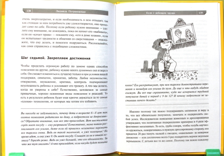 Дальше еще полкниги идет пошаговая инструкция (8 шагов) как работать с трудным поведением. Кому-то может показаться, что там мало конкретики - мне достаточно, надо только еще раз прочитать и попытаться лучше разложить в голове.