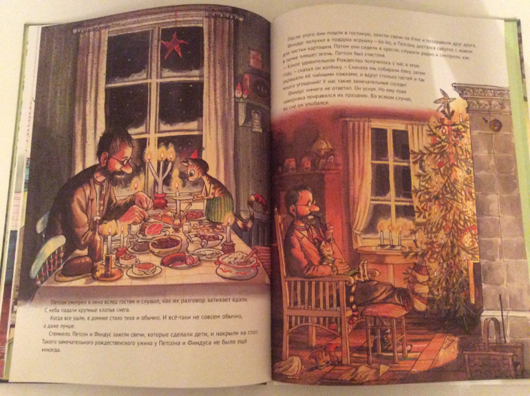 Понравилась скромность Петсона, он ведь искренне старается скрыть, что у него неприятности и что Рождество может быть испорчено. А Финдус наоборот несдержан. Они очень хорошо дополняют друг друга!