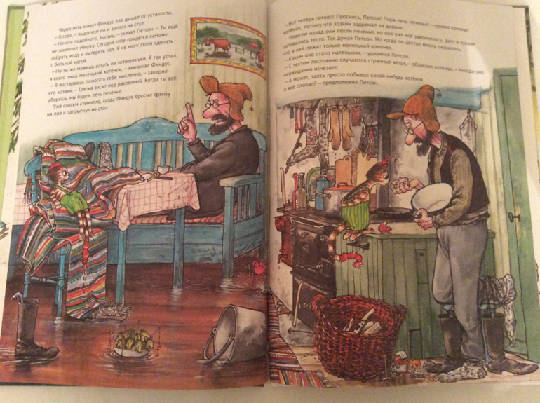 А когда они начинают печь печенье, Петсон не ругается, что тесто кто-то слопал, а переводит все в шутку) Это уже учеба для нас, чтобы не нервничать по пустякам
