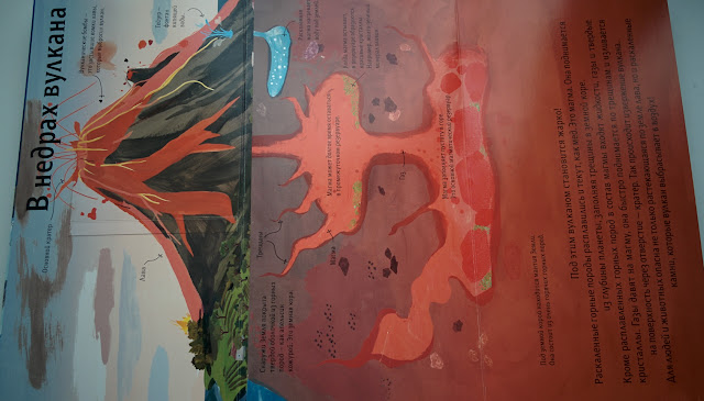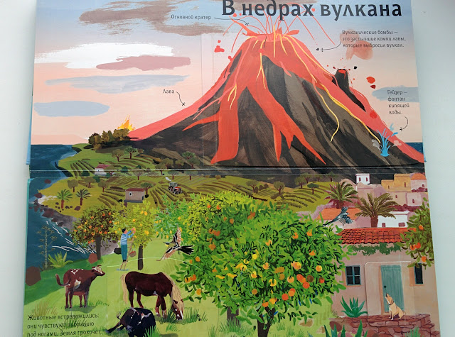 Можно узнать, что внутри вулкана, как вырыт колодец в пустыне, как образуются пещеры и кто живет под островом в океане. Это первая наша книга из этой серии, а еще в таком же формате есть Природа и Город. У вас они есть? Мне кажется, про Город еще обязательно надо взять!