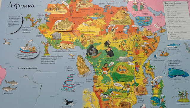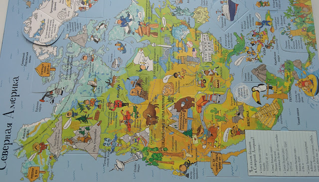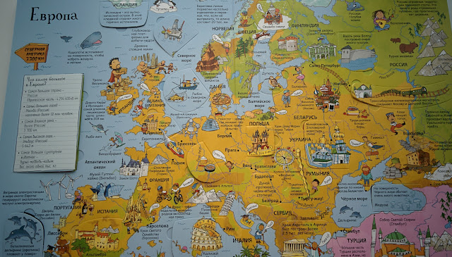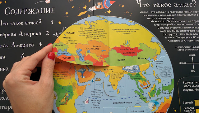 Из минусов - мне не очень понравилось, как обошлись с Евразией. С одной стороны, материк большой и то, что его разделили на 2 разворота (Европа и Азия) - логично, получилось более подробно. Но почему они идут не подряд? Между ними почему-то Африка.