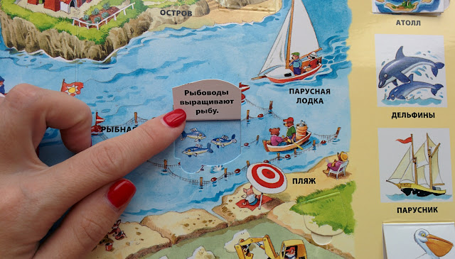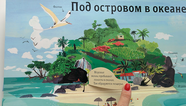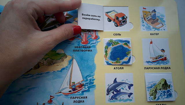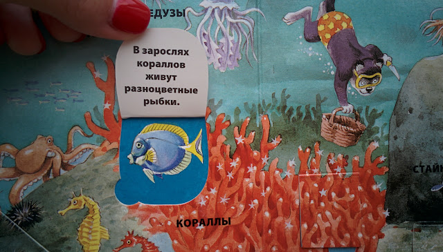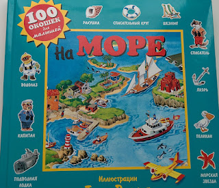 "На море" - отличная книга с окошками. Написано, что для малышей, но мне кажется, это на возраст Влада как раз, т.к. клапаны маленькие и есть сложная лексика (эстуарий, атолл).