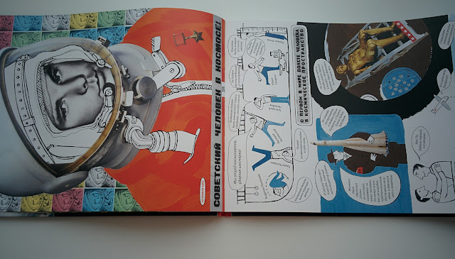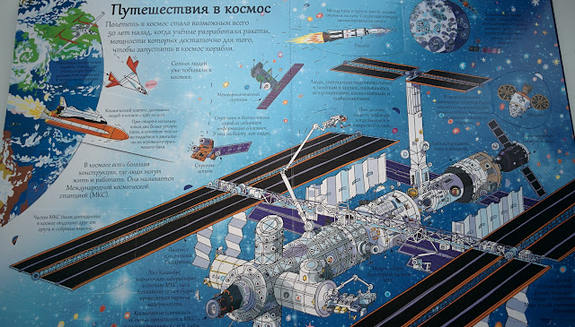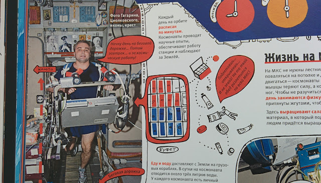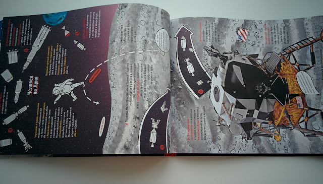 Очень много информации о традициях космонавтов, их тренировках, о жизни на МКС, подробно рассказывается сборка и запуск ракеты. Кстати, про американцев и луну тоже есть, все по-честному :) Вообще это книга не новая, она уже издавалась ранее и заслужила множество наград, а сейчас ее переиздали