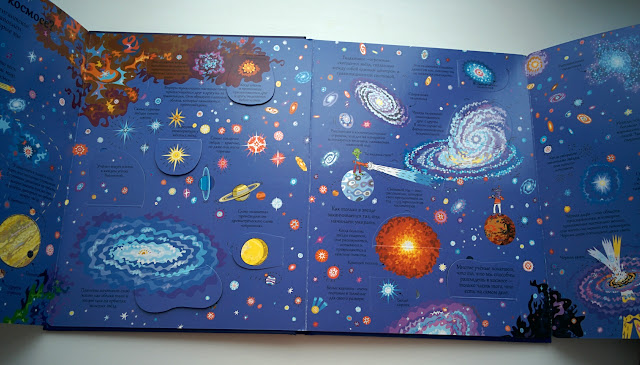 Два разворота раскладываются в большую панораму: этот и с солнечной системой.