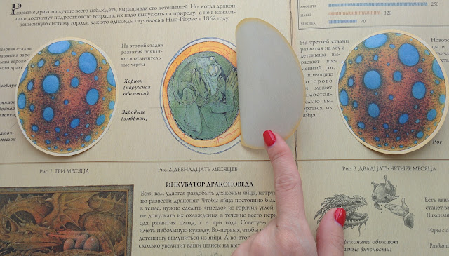 Даже есть разные вставки - с образцами кожи, перепонок крыльев, драконьей пыльцы.