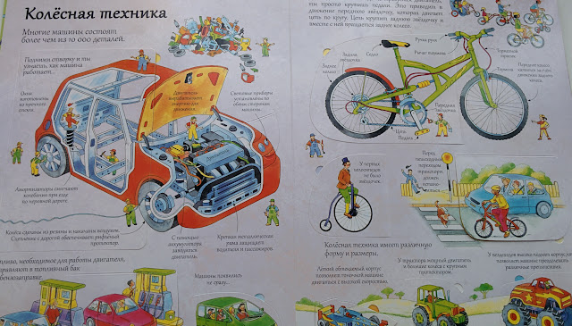 Это, пожалуй, наша самая любимая книга в серии. Очень интересная тема, к тому же большое разнообразие! Можно узнать, как работает машина, кран, пианино, унитаз и куча другой техники и приспособлений! Для мальчиков просто маст-хэв!