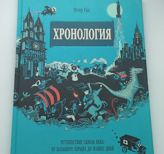 "Хронология" (бельгийский иллюстратор Петер Гюс) - большое и красивое подарочное издание. С помощью своеобразной инфографики представлена история от Большого взрыва до наших дней. Книга не для малышей! Скорее, для школьников, есть развороты и о инквизиции, и о войнах, и о современном терроризме.