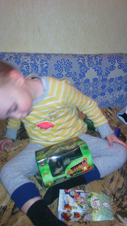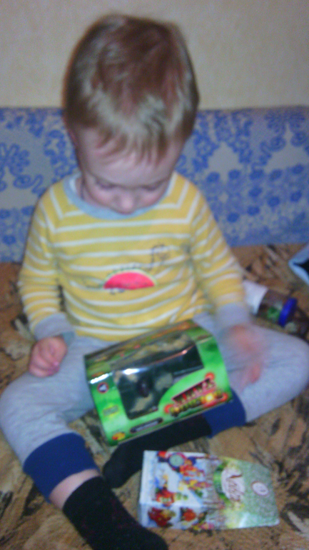 Егор его осматривал со всех сторон полчаса, нам в руки так и не дал, поэтому в распакованном виде танка нет))) Открыл сам, а танк оказался еще и на батарейках, сам едет, танкист открывает/закрывает люк и огни горят. Только этот танк и поднимал Егора с постели даже с высокой температурой.
