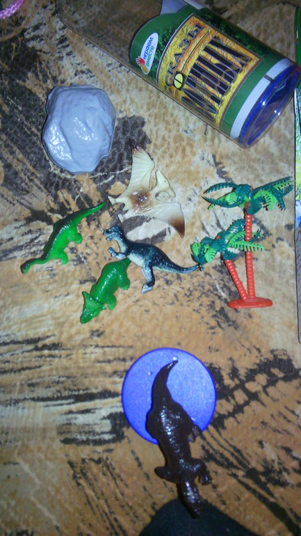 Первыми показались динозавры. Эта любовь, наверно, не закончится никогда. У нас их целый пакет, но Егор каждый раз просит еще и еще. Даже с крышки потребовал динозавра ему снять, а это оказалось не так-то просто))