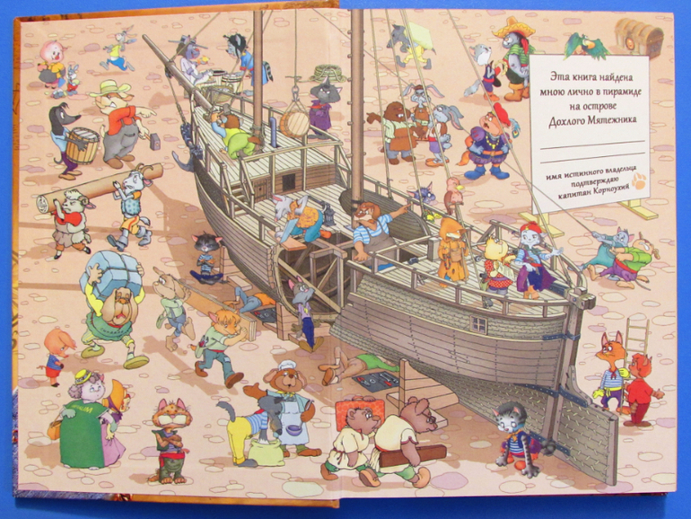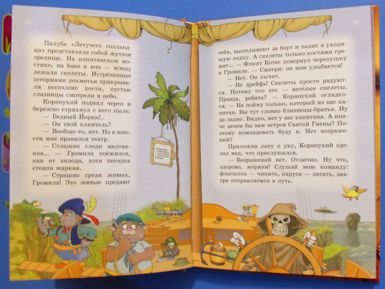 С рисунками на каждой странице. Книгу можно не читая пролистать, рассматривая картинки, и сразу же увлечься нарисованным сюжетом.