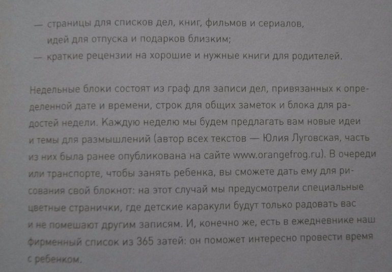 В конце есть "фирменный список" из 365 затей, который поможет провести время с ребенком весело, интересно и с пользой.