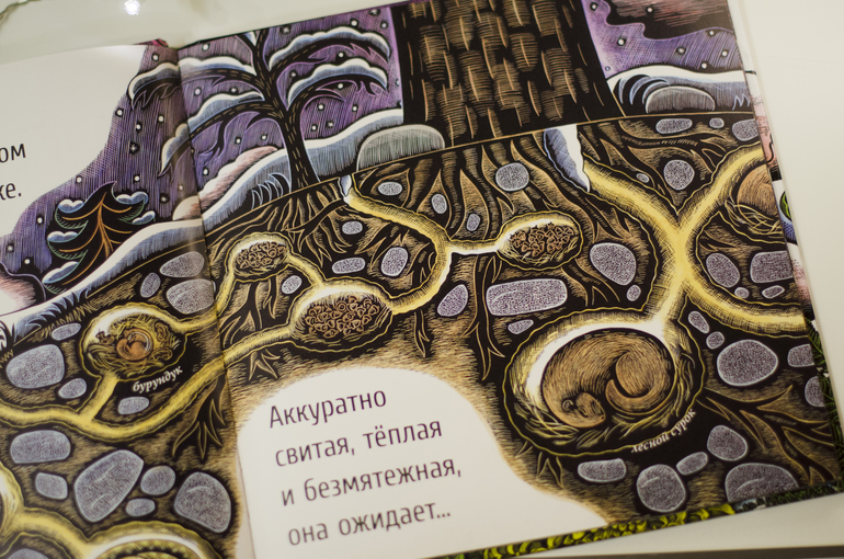 Кто-то в снежную зиму спит в теплой норке свернувшись калачиком.