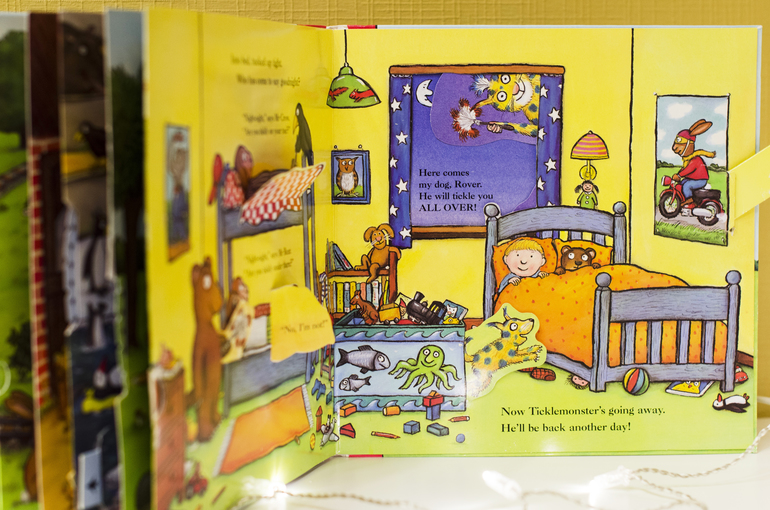 Ну ладно...Так чем же они занимаются по ночам герои моих любимых и не очень книг? Что замышляют, пока я пишу про них обзор? Первый мой герой - это щекотальный монстр из очередного психоделического творения Уайброу и Шефлера, который перед сном заглянул в детскую к малышу, да еще и щекотального щенка с собой привел))