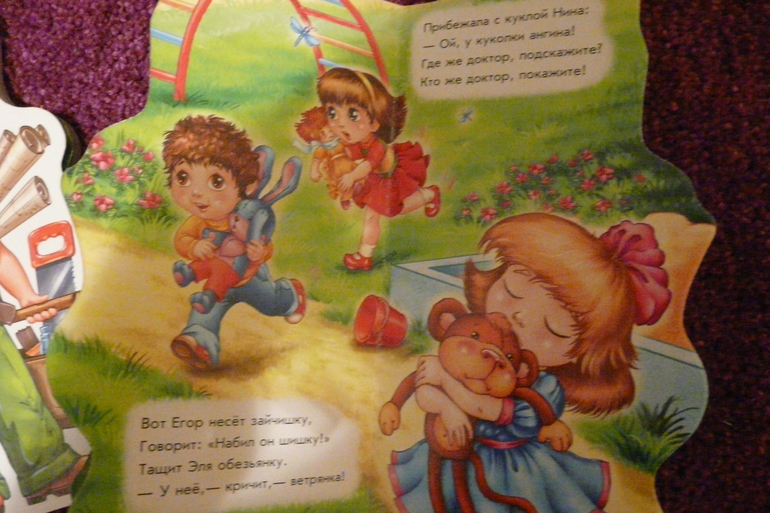 Хочу написать о книгах издательства "Ранок" с которым случайно познакомились. Книги из раздела, хорошее соотношение цена-качество. Плотный картон,яркие иллюстрации,они правда компьютерные.Эта серия про профессии, в ней идут сюжеты ,как дети играют в докторов,продавцов и т.д